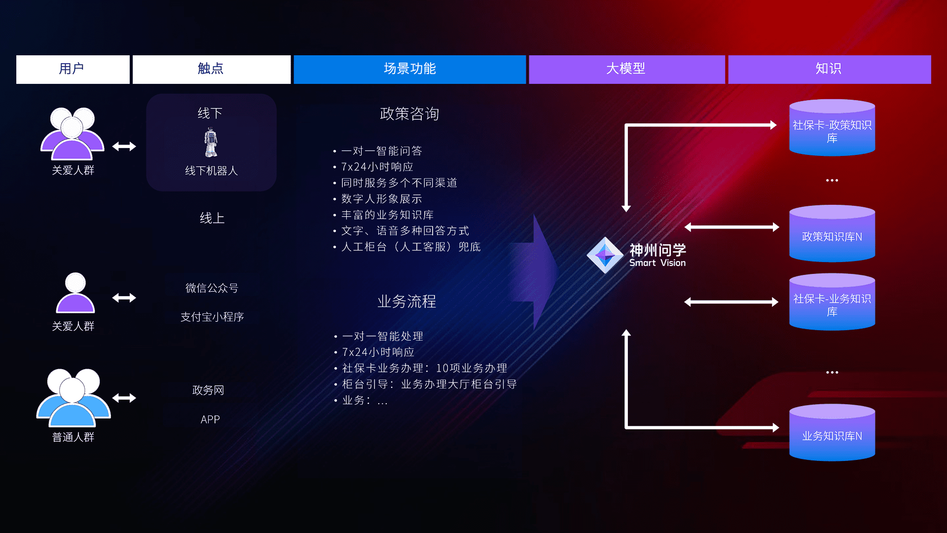 • 线上线下全覆盖:线上提供微信公众号、、支付宝小程序、、、、政务网、、、、app多种渠道,,与线下机器人形成完整服务体系。。。。